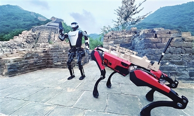 2024年8月23日,“绵阳造”人形机器人夸父-MY、四足仿生机器狗登上长城。视觉绵阳资料图片