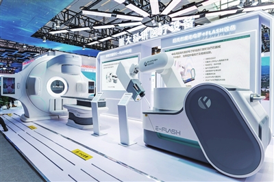 第十三届科博会上,长虹展区展出的e-Flash放射治疗设备和X-Flash放射治疗设备。视觉绵阳资料图片