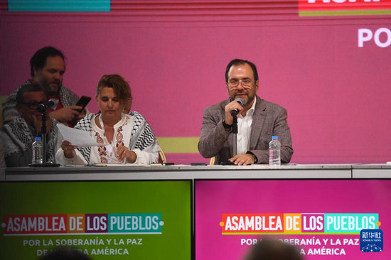 12月9日,委内瑞拉外交部长希尔(右)在首都加拉加斯举行的“美洲主权与和平人民大会”开幕式上发表讲话。新华社发(马科斯·萨尔加多摄)