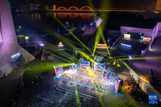 12月9日拍摄的2025年湖南“欢乐潇湘”优秀群众文艺作品展演活动现场(无人机照片)。