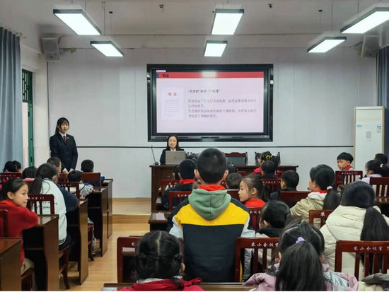 绵阳新闻网讯 为了全面推进法治教育,普及法律知识,增强青少年法律保护意识,切实提升其道德与法治素养,并积极联动法治工作者为校园普法教育赋能。12月2日下午,绵阳市德政街小学特邀经开区人民检察院第一检察部主任刘霏来校,开展了以“法治护航成长,守护少年花开”为主题的2025年秋法治进校园宣讲活动,全校1500余名师生促进活动。