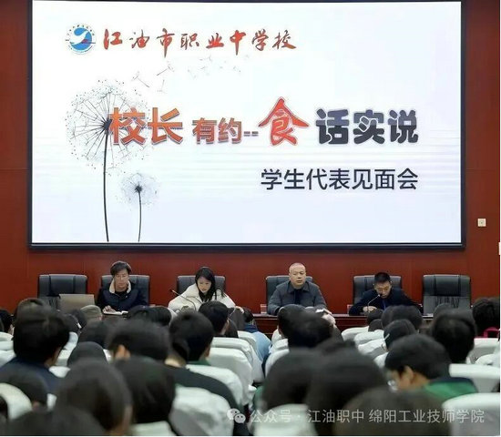 绵阳新闻网讯 为了进一步加强学校食堂与小卖部管理,提高服务质量,增进学生与学校管理的理解互信,12月4日晚,江油市职业中学校召开了以"校长有约——‘食’话实说"为主题的2025年秋学生代表见面会。该校校长王勇坦诚地与200余名学生代表开展了“食”话实说交流会。