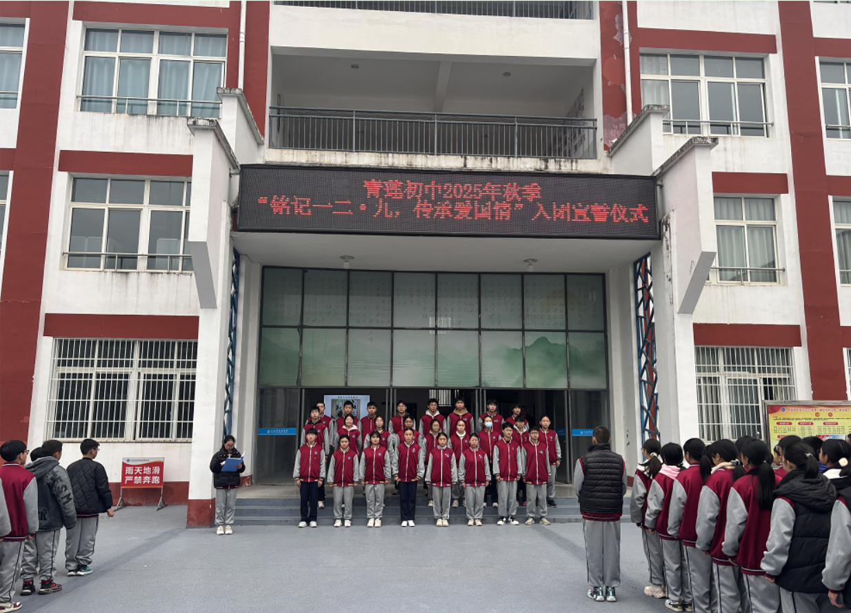 12月9日,江油市青莲镇初级中学举行了以“铭记一二·九,传承爱国情”为主题的2025年秋新团员入团宣誓仪式,激励广大青年学子继承光荣传统,肩负时代使命。