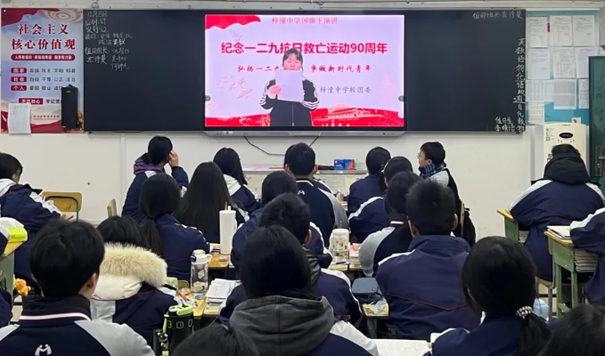 该校团委副书记王一妃介绍了一二·九运动的历史背景:1935年,日本帝国主义加紧侵华,华北危机空前严重。“华北之大,已经安放不下一张平静的书桌了!”在此民族存亡关头,北平数千名学生冲破封锁,走上街头,掀起全国抗日救亡新高潮。随后详细讲解了运动的过程和意义。一二·九运动促进了中华民族的觉醒,推动了抗日民族统一战线的形成,展现了青年学生崇高的爱国主义精神。最后强调新时代团员应当坚定理想信念,听党话、跟党走;勤奋学习知识,练就过硬本领;勇于实践创新,担当时代责任;锤炼高尚品格,引领社会风尚。