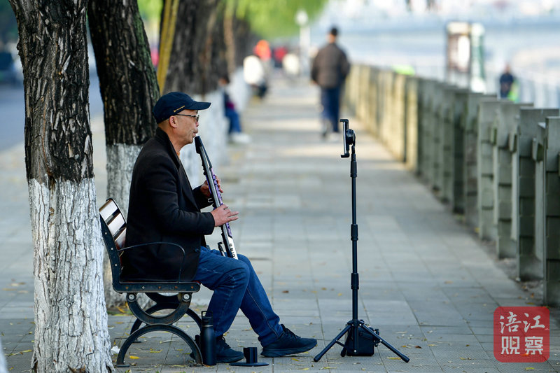 三三两两的市民游客,有的悠闲漫步,有的在湖畔独奏,为深冬季节增添了几分诗意与安宁。