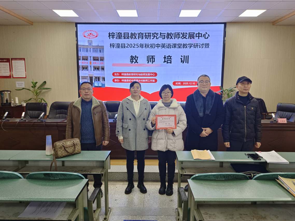 为了深耕初中英语教学改革沃土,落实核心素养育人目标,精进初三课堂教学与中考复习实效,12月10日上午,梓潼县2025年秋初中英语课堂教学研讨暨教师培训活动在文昌中学圆满启幕。绵阳市教科所初中英语教研员王能钗、梓潼县教育研究与发展中心教务处主任李阳华、教研员陈丽帆、教研员敬纪,县初中英语乡村教师工作室领衔人刘尧胜,以及初中英语乡村教师工作室全体成员和全县九年级英语教师齐聚一堂,共探教学良方,共绘育人蓝图。