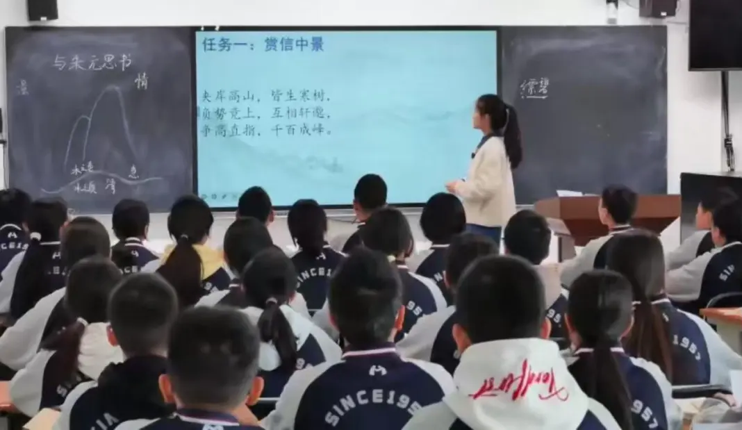 课堂以情境为引、任务为轴。蔡老师以一封装帧仿古的信笺创设“收到千年邀约”的真实情境,引导学生化身“朱元思”,在启封展信的仪式中进入文本。整堂课围绕“赏信中景”“品景中情”“遥寄心言”三大任务逐层推进,构成完整而深度的学习闭环。
