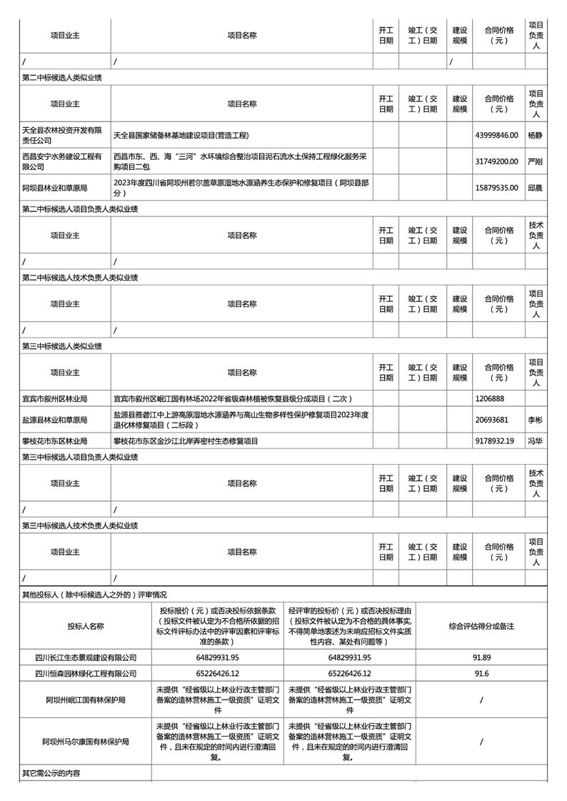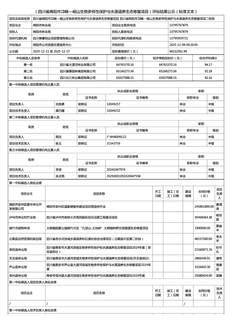 四川省绵阳市邛崃一岷山生物多样性保护与水源涵养生态修复项目评标结果公示(二标段)