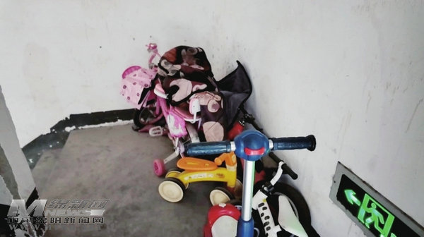 除了设施老化,日常管理中的“动态隐患”同样突出。在位于涪城区的未来城小区,尽管单元楼栋内张贴着“消防器材禁止挪用”“禁止堵占消防通道”等类似提醒通知,但楼道内杂物乱堆乱放的情况依旧屡见不鲜——有的业主将旧鞋柜靠在墙边,有的则把纸箱、塑料玩具等堆在楼梯转角,个别楼道的杂物甚至占了一半通行空间,居民上下楼需侧身绕行。