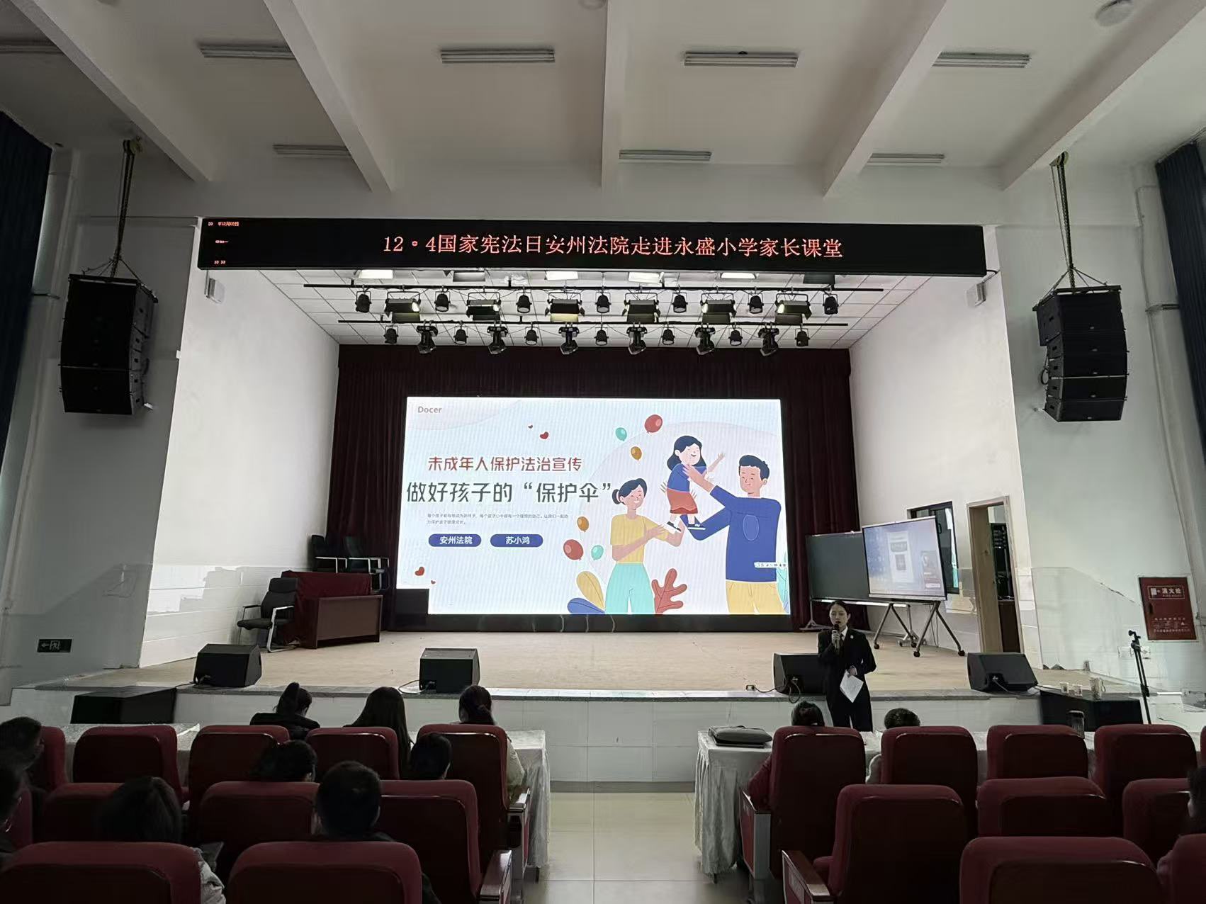 近日,安州区人民法院庭长助理苏小鸿走进永盛小学,开展了以“防校园欺凌+宪法普及”为主题的2025年秋家长课堂讲座活动。