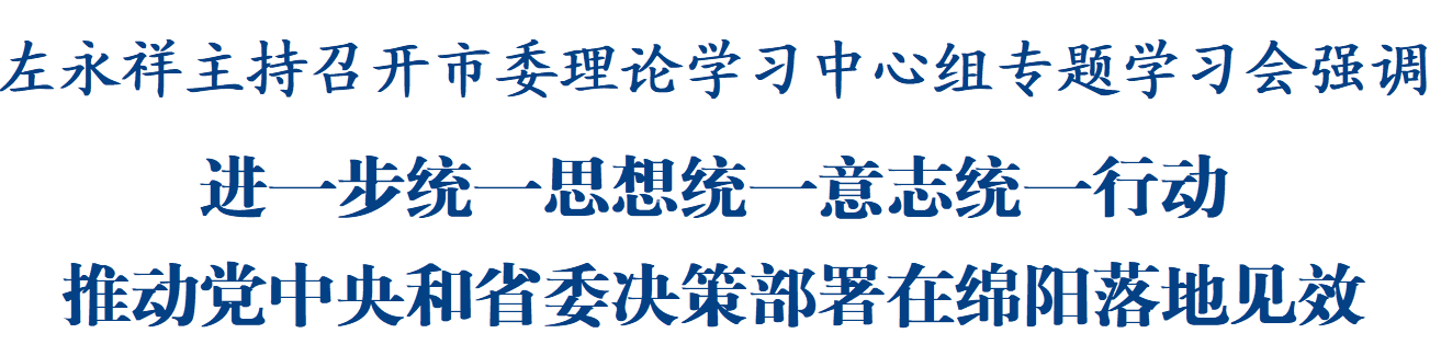 左永祥主持召开市委理论学习中心组专题学习会强调:进一步统一思想统一意志统一行动 推动党中央和省委决策部署在绵阳落地见效