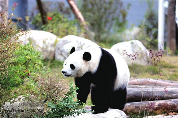 北川大熊猫动植物园里的大熊猫“升谊”。 记者 胥江 摄