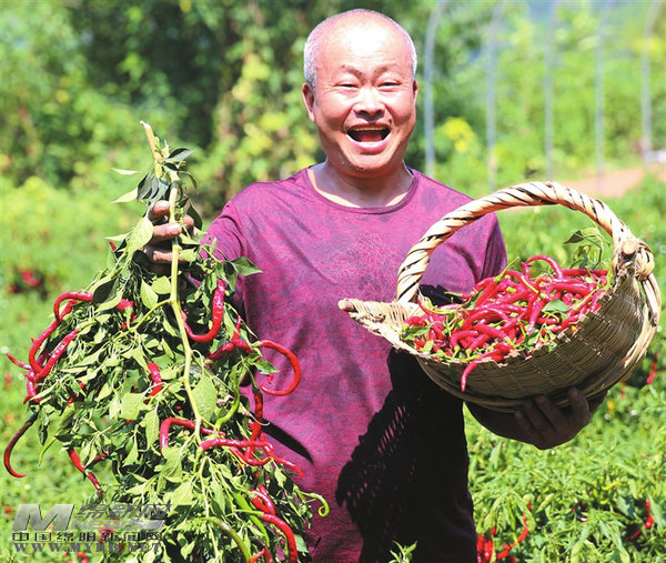 辣椒丰收,盐亭县农民潘洪林笑开颜。