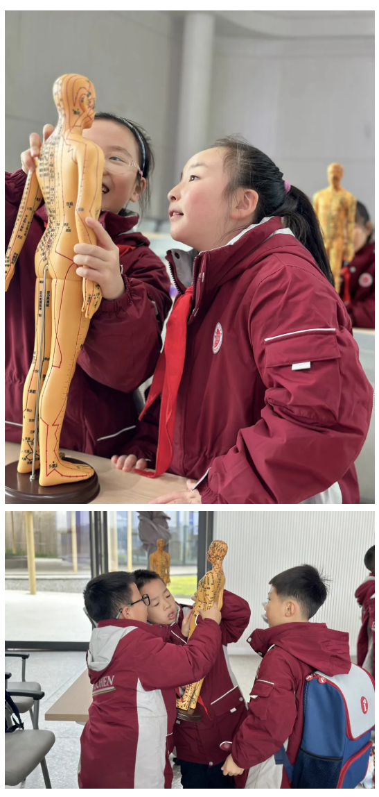 “原来这里是足三里!”在中医经络知识小课堂上,同学们认真聆听老师的讲解,学习人体主要穴位与保健方法。大家互相练习简单的按摩手法,在亲手实践中理解了经络沟通表里、运行气血的中医智慧,感受传统按摩的舒适与奇妙。