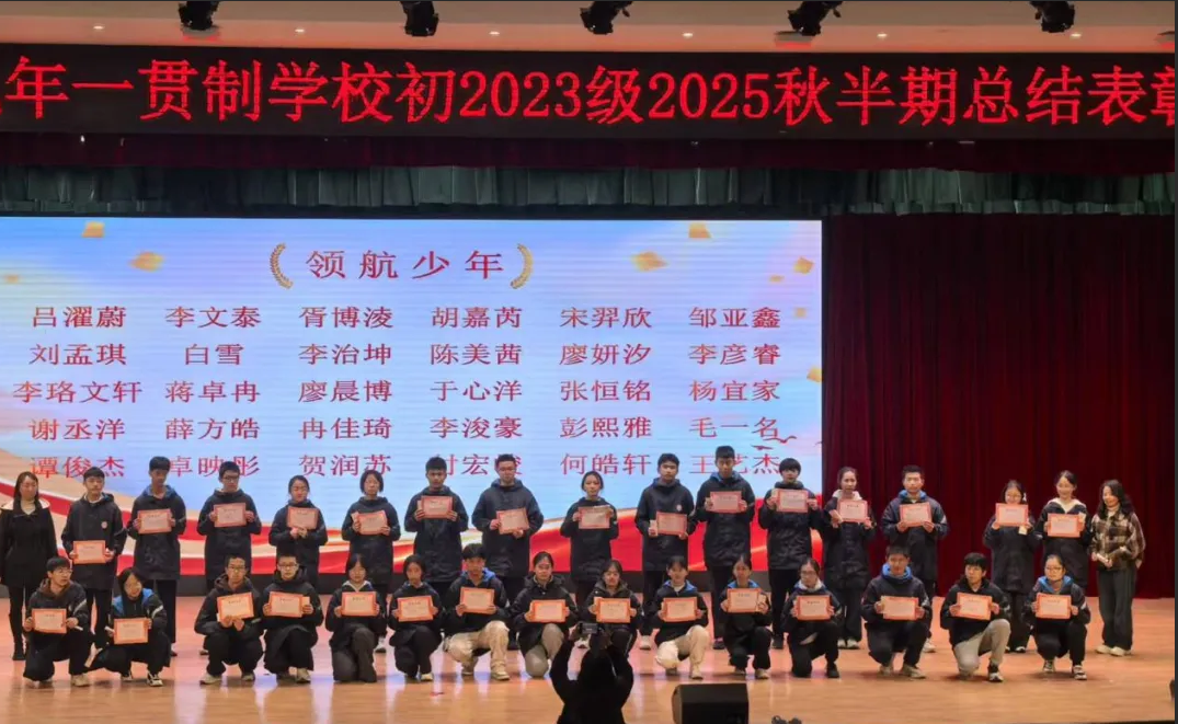 为了回望成长足迹,礼赞榜样力量,凝聚同心之志,进一步点燃全体初三学子的逐梦豪情, 近日,绵阳市高水九年一贯制学校初三年级全体师生齐聚传习厅,举行了以“以笃行为径,铺就进阶路;以聚力为帆,续写奋进篇”为主题的2025年秋第二次阶段性总结表彰大会。本次大会既是对过往耕耘的沉淀与致敬,更是向理想征程奋勇奔赴的集结号、冲锋令!