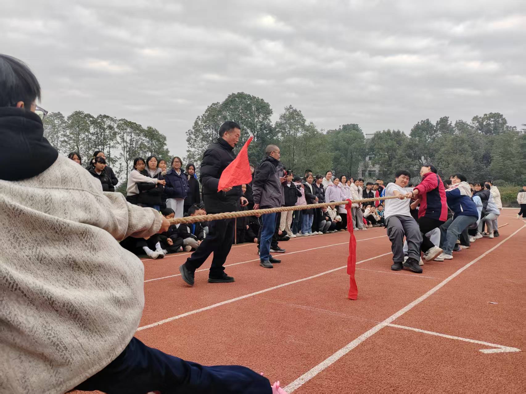 12月10日上午,庄严的升旗仪式为盛会拉开序幕。五星红旗冉冉升起,全体师生肃立注目,少年们眼中饱含热忱,以昂扬姿态迎接这场期盼已久的活动。随后的方阵巡礼环节,各方队依次登场,尽显风采。国旗方队学子手擎红旗,步伐铿锵;由30人组成的彩旗方队紧随其后,五彩旗帜迎风飞扬,瞬间点燃全场热情。