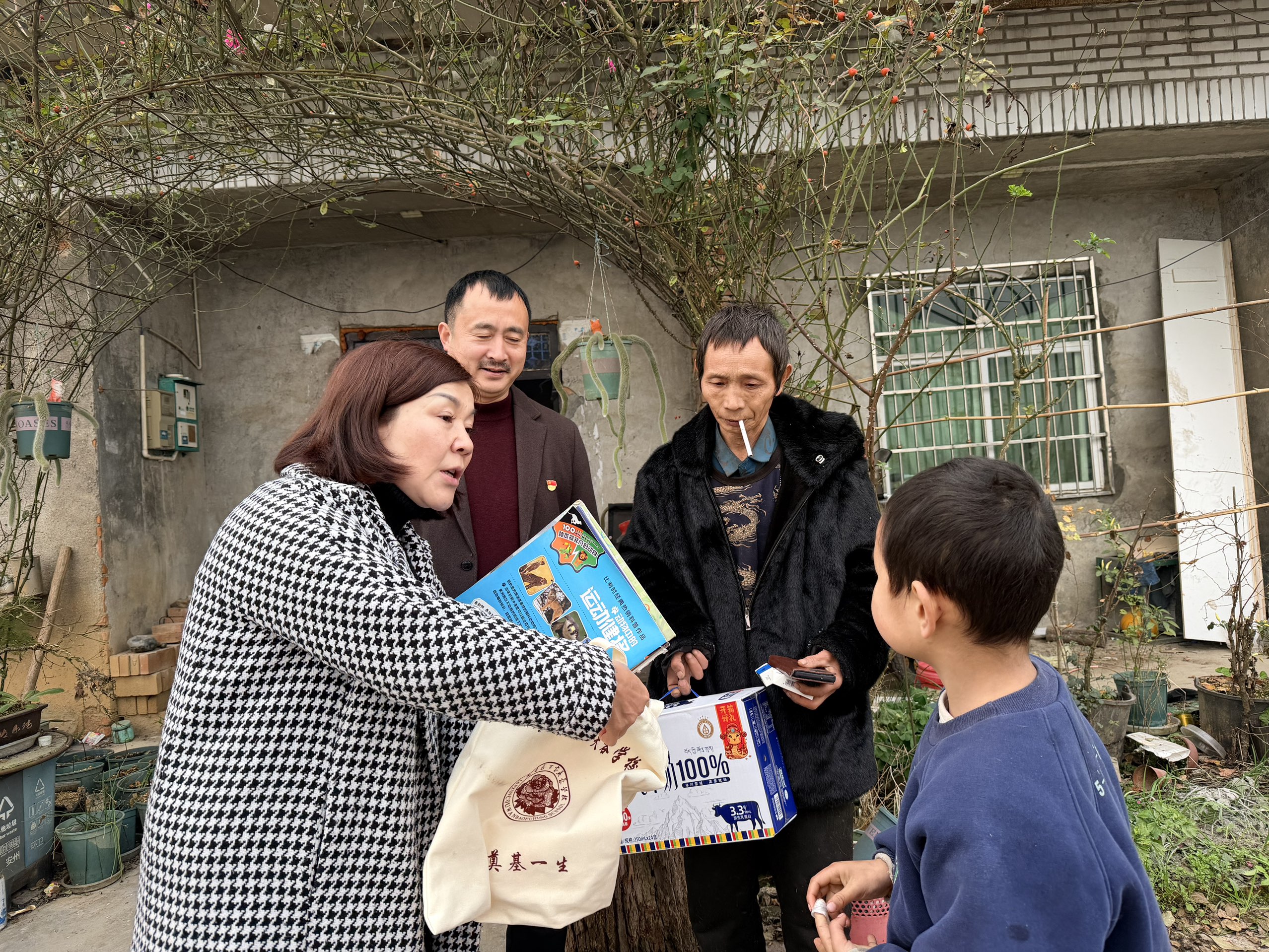 12月18日,安州区永盛小学党总支书记刘文菊、校长文和平、教师陈虹茹带着书籍、牛奶等慰问物资走进学生陈嘉俊家中,开展了以“冬日暖走访?温情助成长”为主题的2025年秋入户送教活动。
