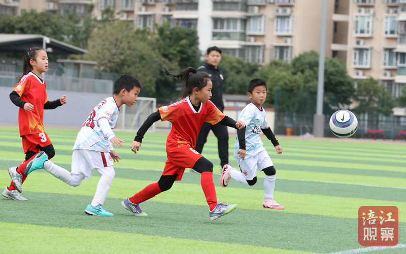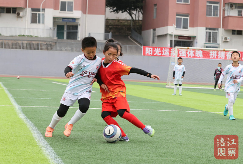 比赛一开始,江油女足的小队员们便开始展现出较为娴熟的足球技巧,他们在五人制足球场上与同年龄段的男孩们奋力争抢。别看孩子们小小的个子,面对双语学校的男队员,这些女孩一点也不胆怯,总是想方设法突破对方防守。对方有好几次射门,大都被江油女足队员防守成功,守门员也勇敢地夺下了几次射门。双方在球场上你拼我抢,几乎可以说势均力敌。总的来看,这些小球员们的传球、停球、射门技巧已经有了较好的表现。
