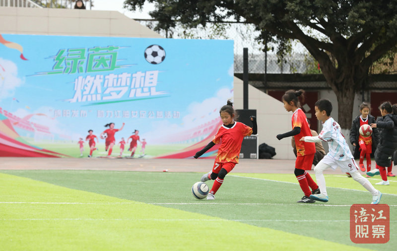 12月20日,在绵阳南山中学双语学校的绿茵场上 ,江油女足与绵阳南山中学双语学校足球队举行了一场公益足球赛,双方球员在球场上奋力拼搏。