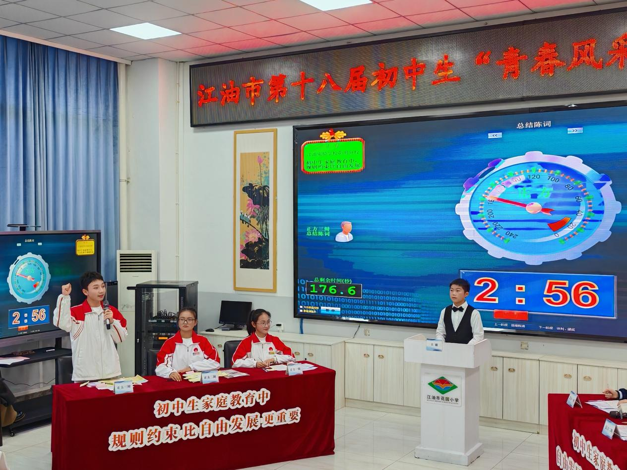 近日,由江油市教育和体育局主办、江油市花园小学承办了以“巅峰对决,谁‘语’争锋”为主题的2025年秋江油市第十八届初中生“青春风采”辩论赛总决赛活动。市委教育工委委员、市教体局党组成员、副局长盛雄及江油市教育和体育局主要领导、分管领导,教育一股、教育发展中心、青少年活动中心等相关负责人莅临现场,与师生们共同观摩了这场青春思辨的盛会。
