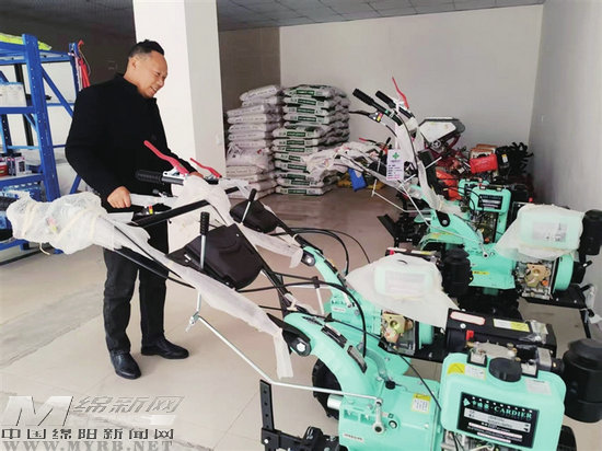 12月20日清晨,三台县富顺镇的田野山坡还笼罩着一层薄雾,该镇供销社负责人马宁已经打开大门,开始清点农机。干净整洁的大厅里,10余台崭新的旋耕机锃亮耀眼。