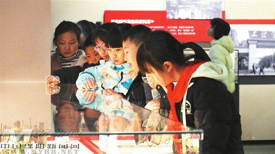 学生认真参观展馆内的展品。 记者 刘晓东 摄