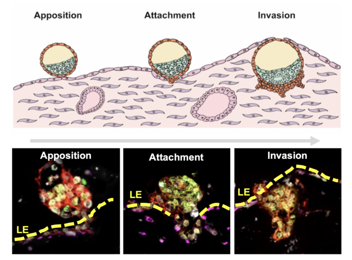 我国研究团队还解析了胚胎在附着阶段和入侵阶段的“对话信号”:附着阶段,胚胎分泌的因子与子宫内膜受体结合,打造了促进“附着位点”形成和抑制上皮细胞凋亡的两条通路,若阻断,囊胚附着率将下降68%;入侵阶段,胚胎与子宫内膜相互分泌因子,促进滋养层细胞增殖。