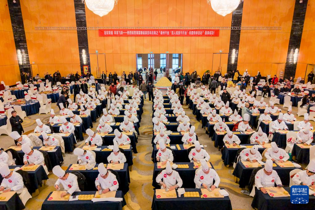 12月23日,泰州早茶“百人炫技千斤丝”非遗传承活动在江苏省泰州市海陵区泰州宾馆举行,百位干丝制作师傅同台献艺,展示泰州早茶中干丝的制作技艺。目前,泰州早茶已形成标准化体系,当地政府将持续深化文商旅融合,助推泰州早茶产业发展。