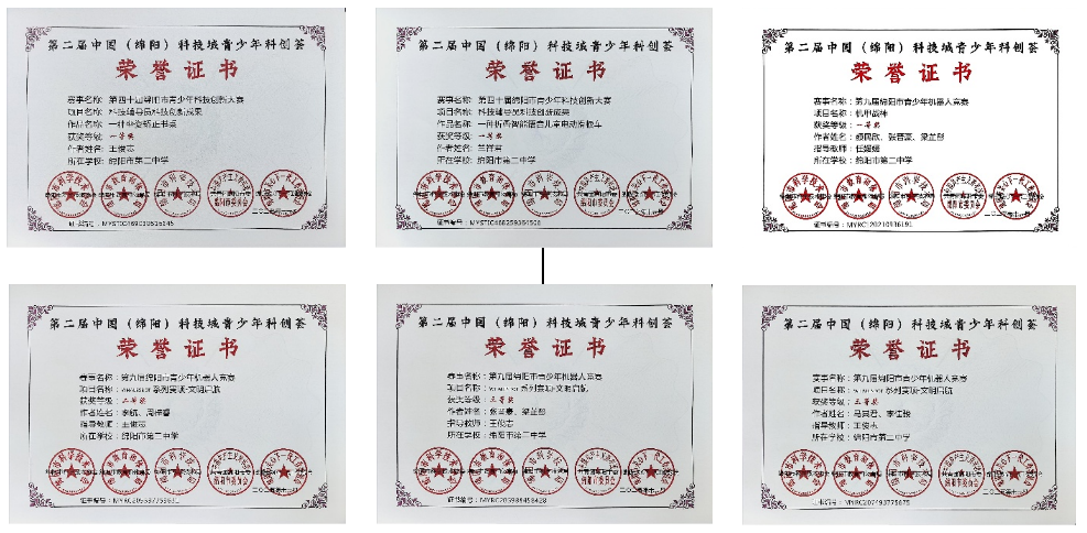 近日,“筑梦科技城 科创向未来”为主题的第二届中国(绵阳)科技城青少年科创荟比赛圆满结束。绵阳市第二中学少科院青少年科技兴趣小组全体同学在王俊志、兰祥君、任媛媛3位老师的指导下积极参加了本次盛会。经过激烈角逐,该校共有9名同学获奖:其中3人荣获一等奖,2人荣获二等奖,4人荣获三等奖;与此同时,王俊志、兰祥君两位老师在科技辅导员科技创新成果项目中均荣获一等奖。