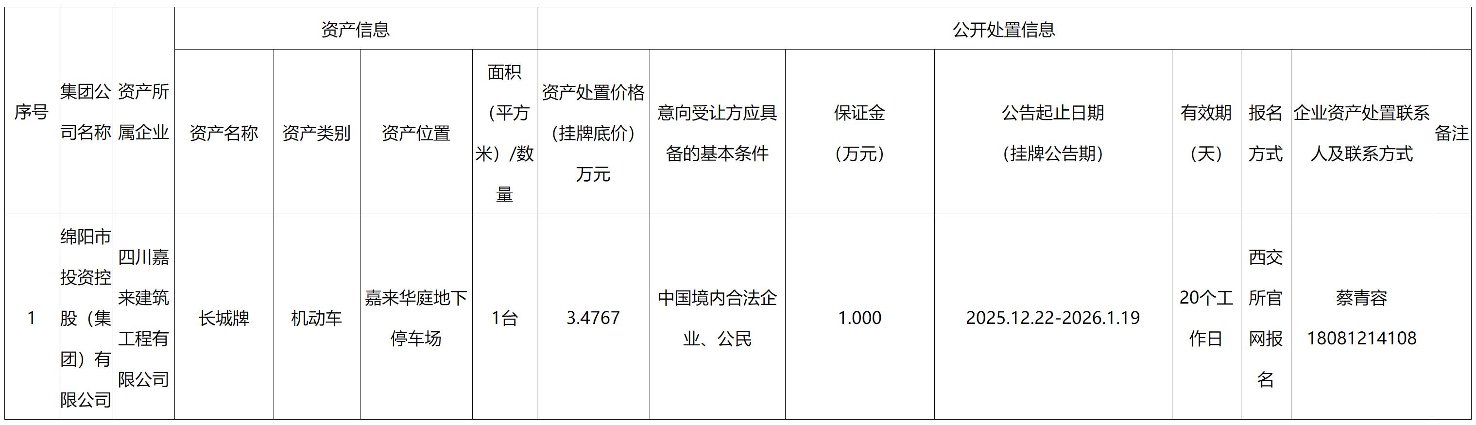 四川嘉来建筑工程有限公司资产处置公告