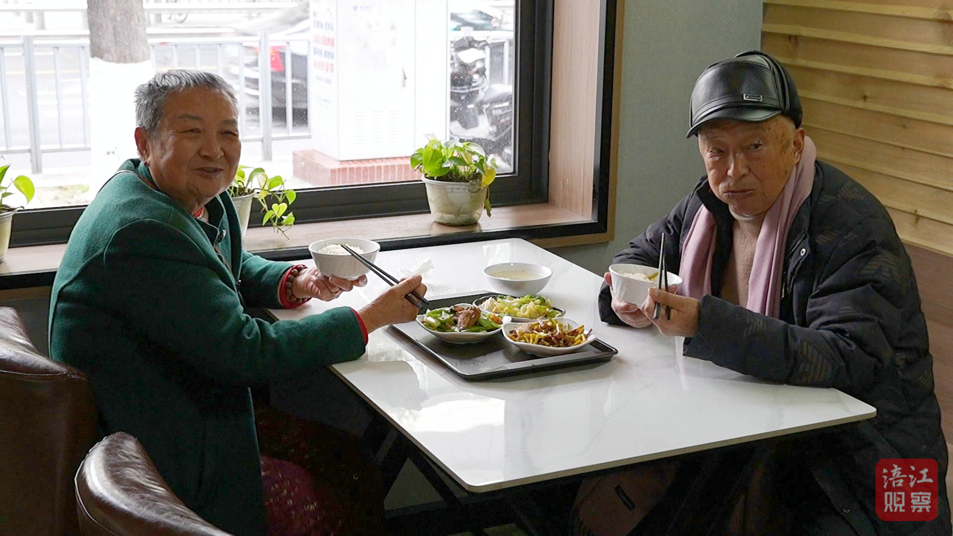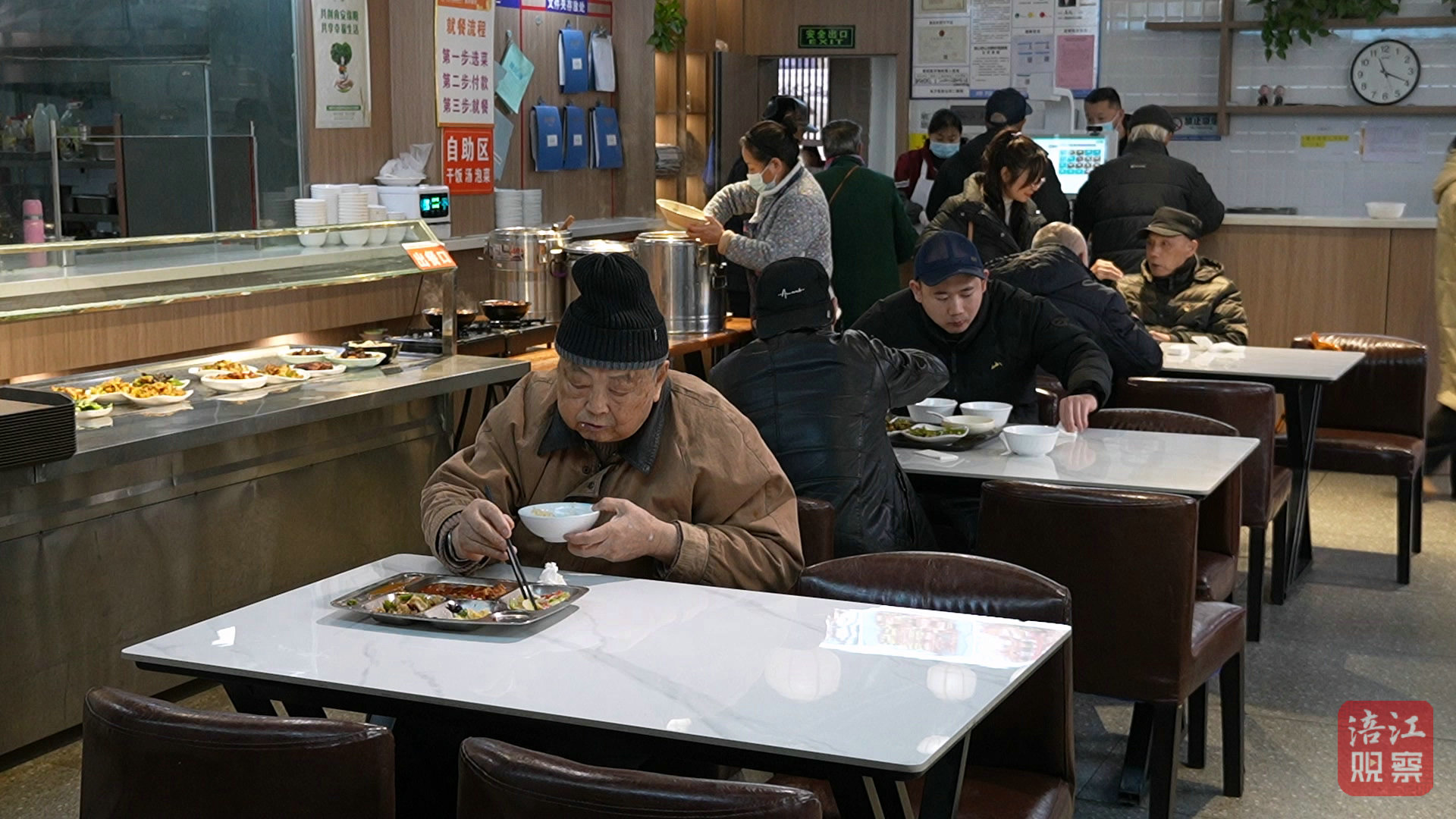 餐厅里烟火气十足,老人们三三两两一桌,边吃边聊,一张张笑脸洋溢着当下的满足。