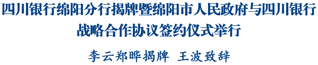 副市长黄波主持。仪式上,四川银行拟任副行长刘小波发布了中国(绵阳)科技城菁英人才卡,绵阳金融监管分局、中国人民银行绵阳市分行有关负责人宣读了四川银行绵阳分行开业批文、同意四川银行绵阳分行加入人民银行金融管理与服务体系复函,并分别向四川银行绵阳分行颁发《金融许可证》《中国人民银行金融机构代码证》。随后,市政府与四川银行签署战略合作协议,四川银行绵阳分行与各县(市、区)政府、园区管委会签署战略合作协议、与部分企业签署合作协议。