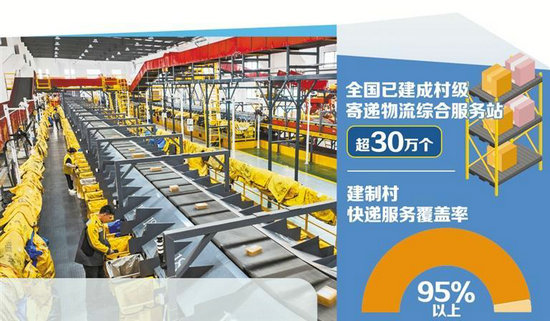 越来越多的农特产品搭上快递“快车”,从大山深处走向全国市场。国家邮政局数据显示,目前,全国已建成村级寄递物流综合服务站超30万个,建制村快递服务覆盖率达95%以上。