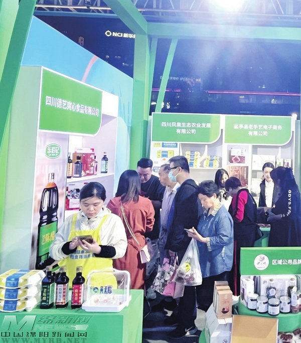 在“绵阳造”宁波行活动中,消费者争相选购盐亭“嫘之味”系列产品。