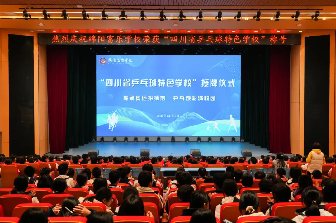 12月19日,绵阳富乐学校举行“四川省乒乓球特色学校”授牌仪式。中国首位乒乓球奥运金牌获得者陈龙灿先生、亚洲冠军陈平西先生亲临现场,与全校师生共同见证这份属于富乐人的荣耀时刻。