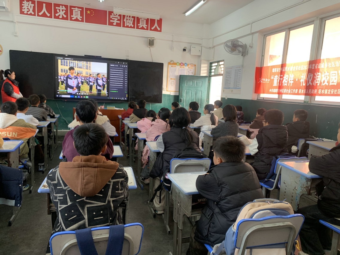 为了深化文明礼仪教育,引导学生积极践行社会主义核心价值观,12月10日,安州区塔水一小联合安州区塔水镇龙安社区社工,面向五年级学生开展了以“童心相伴 礼仪润校园”为主题的文明礼仪班会活动。