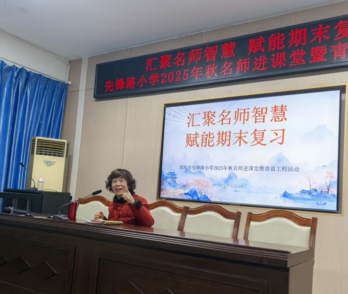 为了充分发挥名优教师的示范引领作用,精准破解期末复习阶段的教学难点,优化复习策略,提升课堂教学效率与复习质量,12月19日,绵阳市先锋路小学开展了以“凝聚名师智慧 精研复习策略”为主题的2025年秋季学期“名师进课堂”期末专题教研活动。本次活动特邀特级教师、高质量发展指导专家黎琼老师莅临指导,通过课堂观摩、深度研讨与专家引领,为全体教师搭建了学习交流平台,助力学生系统建构知识体系,推动学校学业质量整体提升。