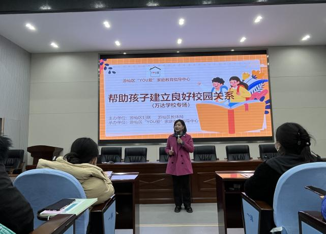 为了深化家校共育机制,促进学生身心健康发展,近日,由游仙区教体局、游仙区妇联办,游仙区"YOU爱"家庭教育指导中心承办的“家庭教育大讲堂”,走进绵阳市万达学校,开展了以“家校携手育新苗 静待花开满园香”为主题的专题讲座活动。活动由万达学校政教处主任王香梅老师主持,一至三年级家长代表参加活动。