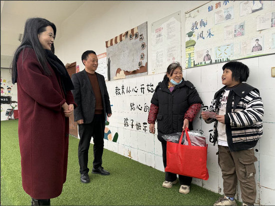 为该校三年级学生龙锦溪送上了冬日暖心礼包,将浓浓的关爱与祝福送到孩子手中。