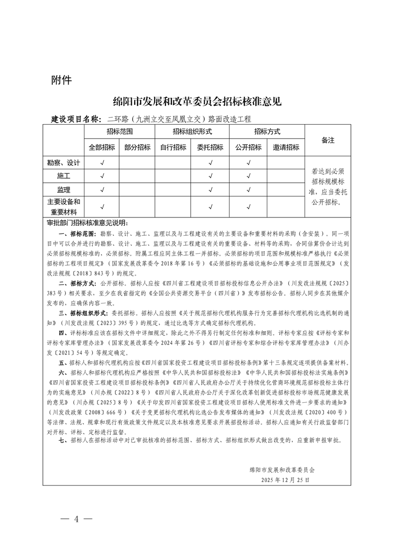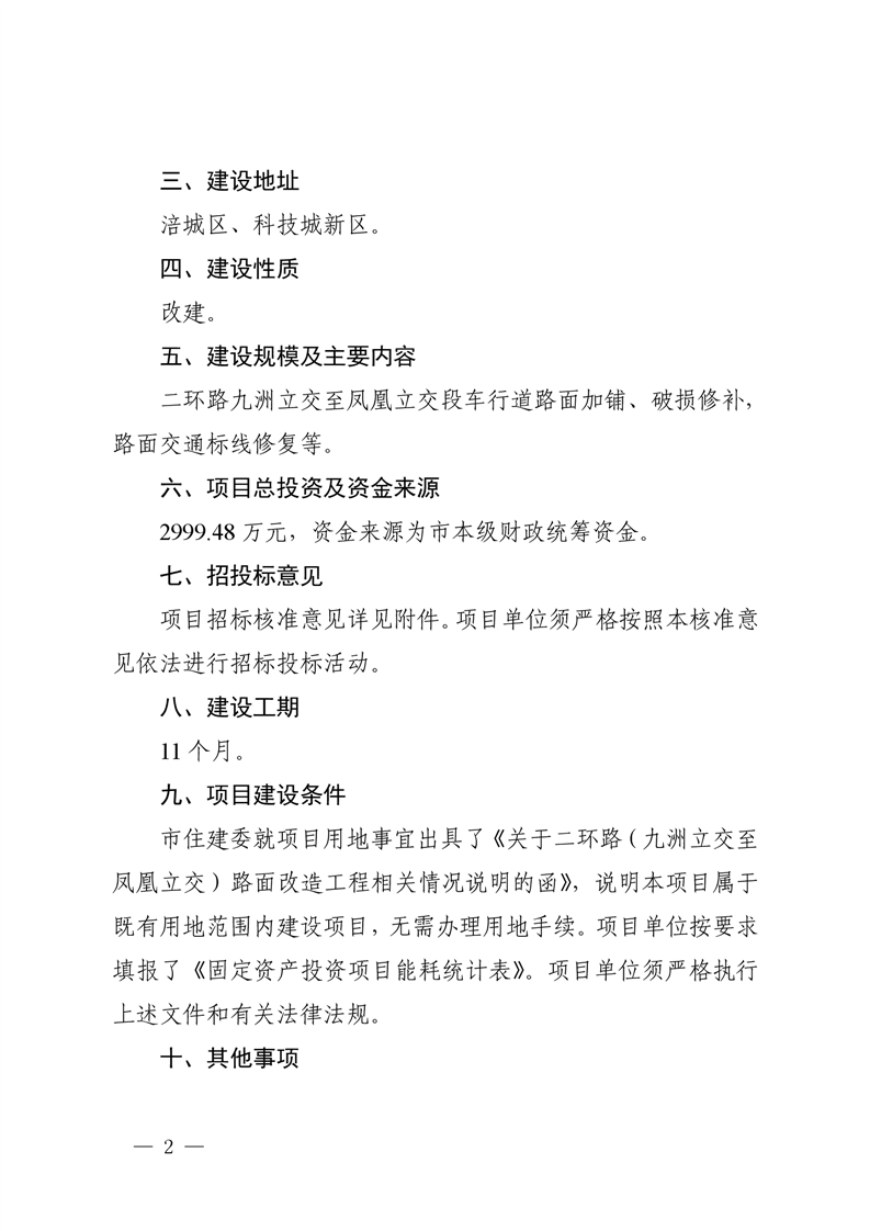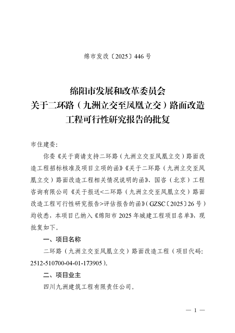 绵阳市发展和改革委员会关于二环路(九洲立交至凤凰立交)路面改造工程可行性研究报告的批复