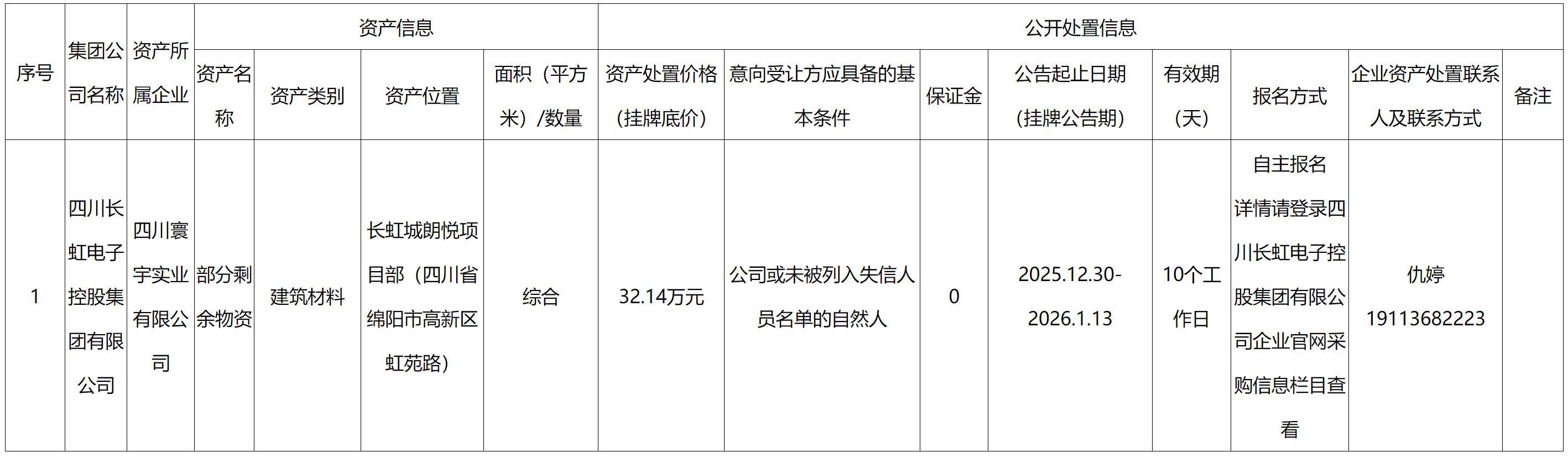 四川寰宇实业有限公司资产处置公告