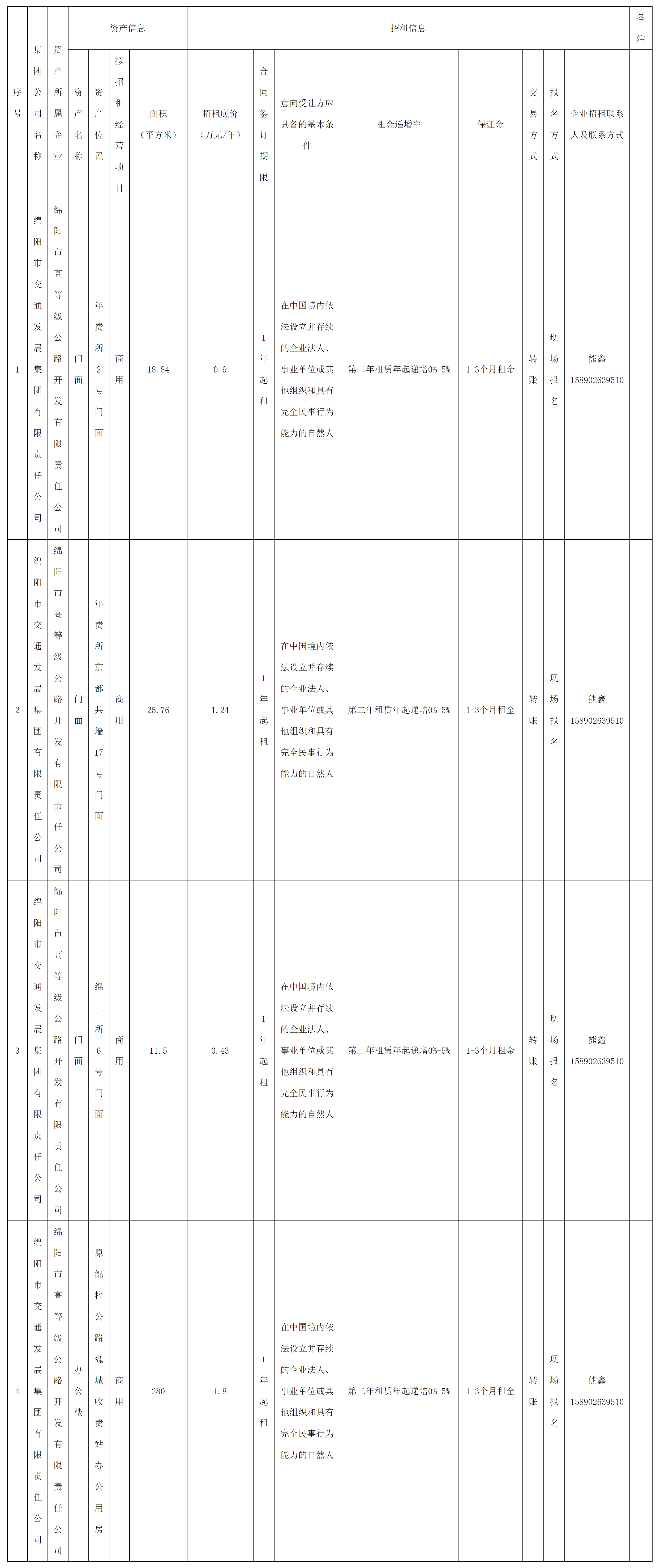 绵阳市高等级公路开发有限责任公司现有部分空置场院对外公开招租,欢迎有意向的单位、个体工商户、自然人报名竞价,现将相关事宜公告如下:
