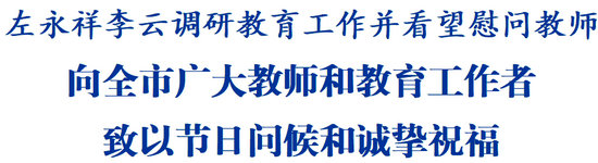 每到一处,左永祥都与学校教师代表亲切交谈,关切询问工作和生活情况,向大家的辛勤付出表示感谢。他说,培养什么人、怎样培养人、为谁培养人是教育的根本问题。希望全市广大教师和教育工作者深学细悟习近平总书记关于教育的重要论述,全面落实立德树人根本任务,牢记为党育人、为国育才初心使命,争做新时代“四有”好老师,努力培养更多德智体美劳全面发展的社会主义建设者和接班人。各级党委、政府要把教师队伍建设作为基础工作来抓,关心关爱教师,维护教师权益,在全社会营造尊师重教的良好风尚,吸引更多优秀人才热心从教、精心从教、长期从教、终身从教。