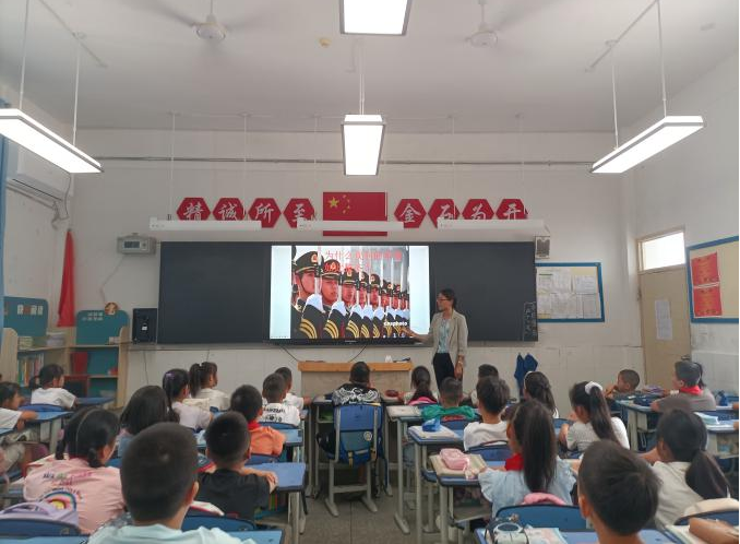班主任还引导同学们回顾了开学思政第一课中的中国抗战史,让同学们结合阅兵仪式谈谈自己的感想。孩子们积极举手发言,有的同学说:“看到阅兵式上的强大阵容,我想到了今天的幸福生活是抗战先烈们的英勇牺牲换来的,真是来之不易,一定要倍加珍惜。”还有的同学表示:“抗战史是一段屈辱与抗争的历史,阅兵则展示了我们国家的崛起,我长大了也要成为一名战士。”