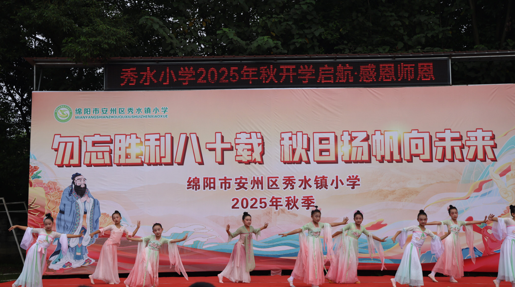 9月9日上午,安州区秀水镇小学举行了以“勿忘胜利八十载 秋日扬帆向未来”为主题的2025年秋季学期开学典礼,为全校师生2000余人带来了一场深刻的精神洗礼。