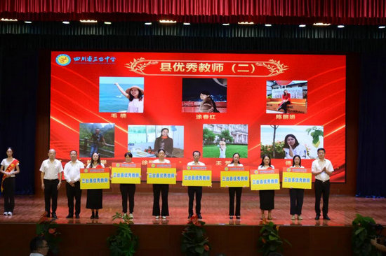 绵阳新闻网讯 9月10日,三台中学隆重举行了以“教育家精神铸魂强师,谱写教育强国建设华章”为主题的第41个教师节庆祝暨表扬大会。三台县委教育工委常务副书记、县教体局党组书记、局长严刚,县教体局党组成员胡运军出席活动。