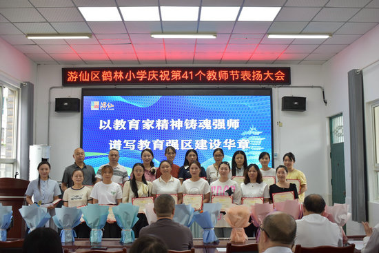 绵阳新闻网讯 9月10日上午,游仙区鹤林小学全体教师齐聚一堂,隆重举行了以“以教育家精神铸魂强师,谱写教育强国建设华章”为主题的第41个教师节庆祝活动。本次活动通过系列庄重而温馨的环节,展现学校尊师重教、追求卓越的教育理念。