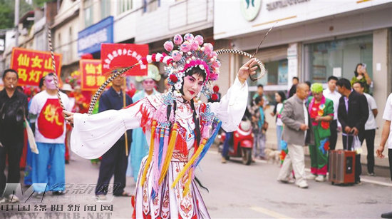 晨雾如纱,轻笼田野山丘。恰逢农历七月初七,三台县忠孝乡双胜场街道上,锣鼓骤响,鞭炮齐鸣,民俗巡游点燃了第一把火,龙舞翻腾似金鳞破云,狮灯跃动如猛虎下山,采莲船摇曳生姿,马马灯蹄声哒哒……忠孝乡仙女山七夕节民俗活动热闹非凡,数万游客与村民涌向山道,人潮如织,笑语喧天。