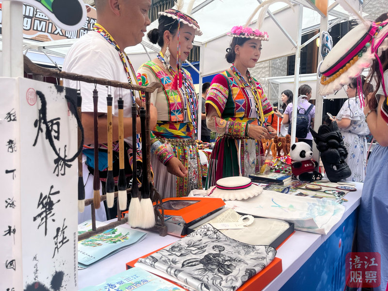 涪城的炳林毛笔诉说悠久历史,盐亭的桑芽茶飘散着清香,平武报恩寺的文创产品吸引了不少艺术爱好者驻足品鉴。
