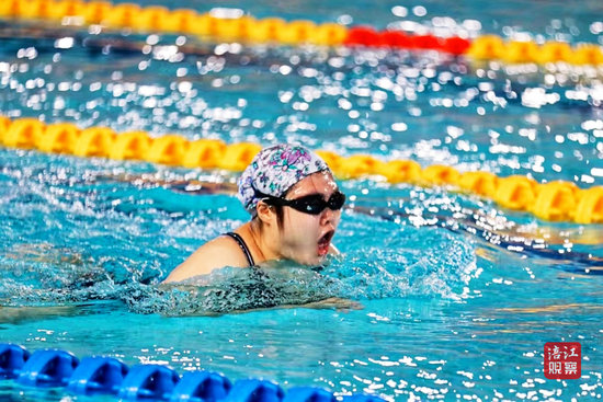 郑曦与队友默契配合、奋勇冲刺,最终斩获蛙泳混合4×50米接力(行业组)季军。